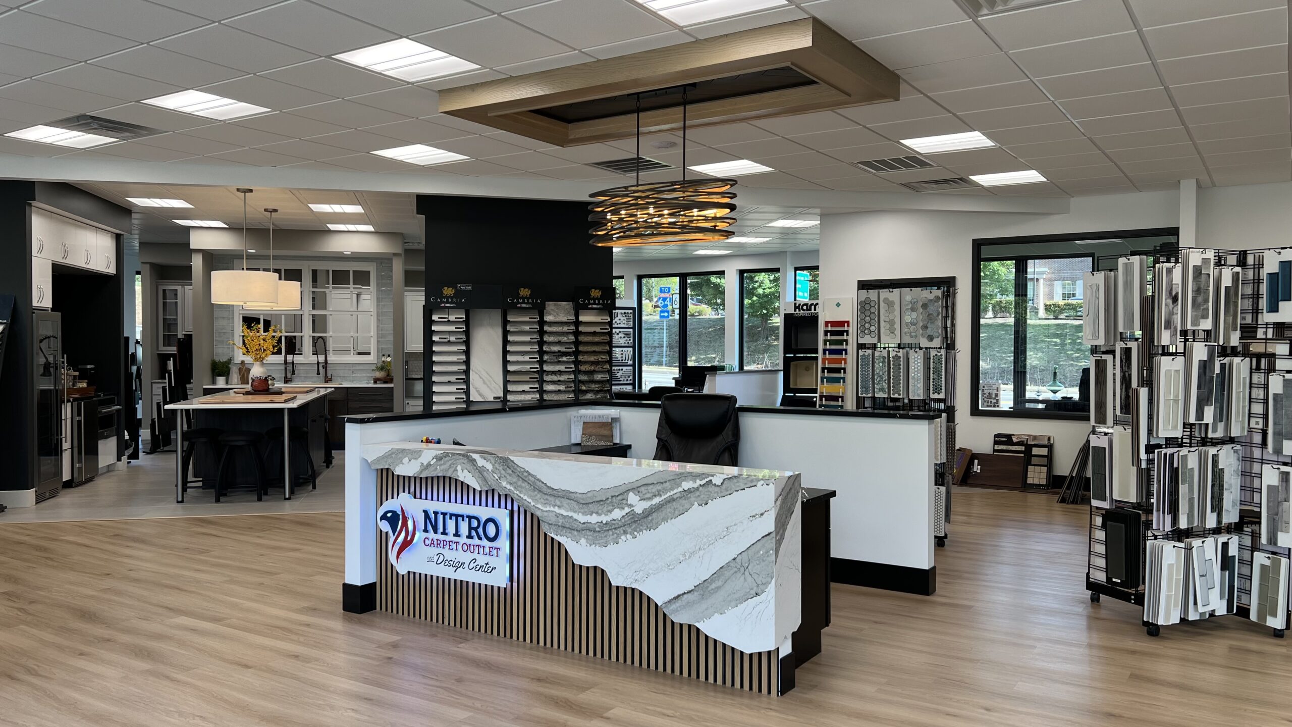 With new ownership at Nitro Carpet Outlet came a new approach to their business. Primarily a floorcoverings dealer before, they wanted a showroom redesign in order to incorporate more kitchen and bath cabinetry and to upgrade the overall customer experience.